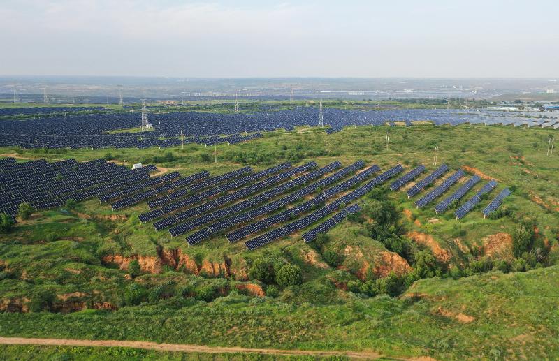 圖為天驕綠能50萬千瓦采煤沉陷區(qū)生態(tài)治理光伏發(fā)電示范項(xiàng)目區(qū)。新華網(wǎng)發(fā)(李志鵬 攝)
