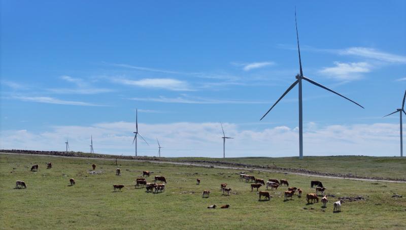 圖為內(nèi)蒙古錫林郭勒盟阿巴嘎旗,一排排風(fēng)力發(fā)電機(jī)與草原構(gòu)成一幅美麗畫卷。新華網(wǎng)發(fā)(郭梓升 攝)