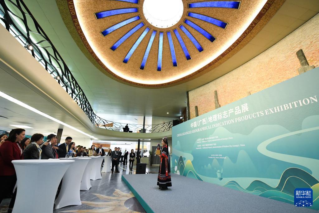 11月17日,在瑞士日內(nèi)瓦世界知識產(chǎn)權(quán)組織總部,人們參觀“中國(廣西)地理標志產(chǎn)品展”。