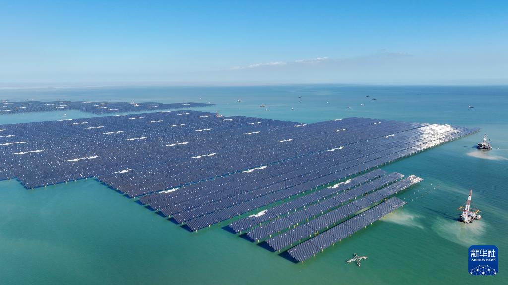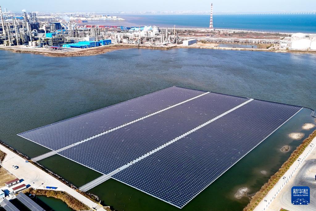 11月18日拍攝的中國石化青島煉化公司漂浮式光伏項(xiàng)目。