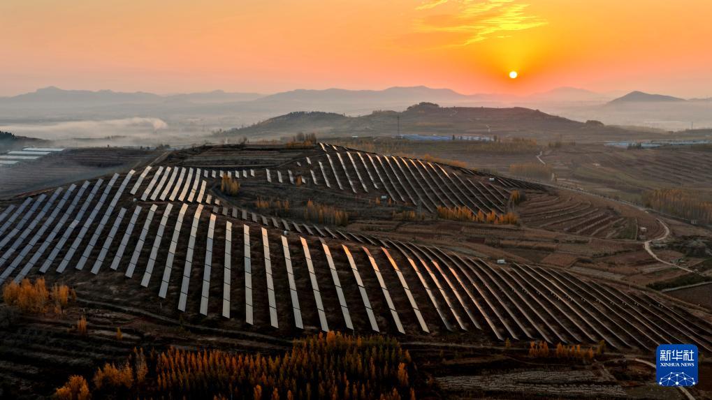 11月14日拍攝的臨沂市蒙陰縣常路鎮(zhèn)東三莊光伏基地(無人機(jī)照片)。
