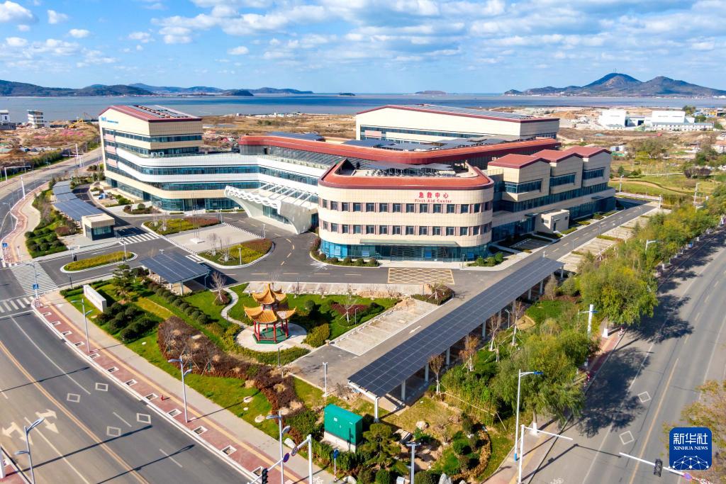 11月18日拍攝的煙臺(tái)市長島海洋生態(tài)文明綜合試驗(yàn)區(qū)人民醫(yī)院屋頂光伏零碳場(chǎng)景(無人機(jī)照片)。