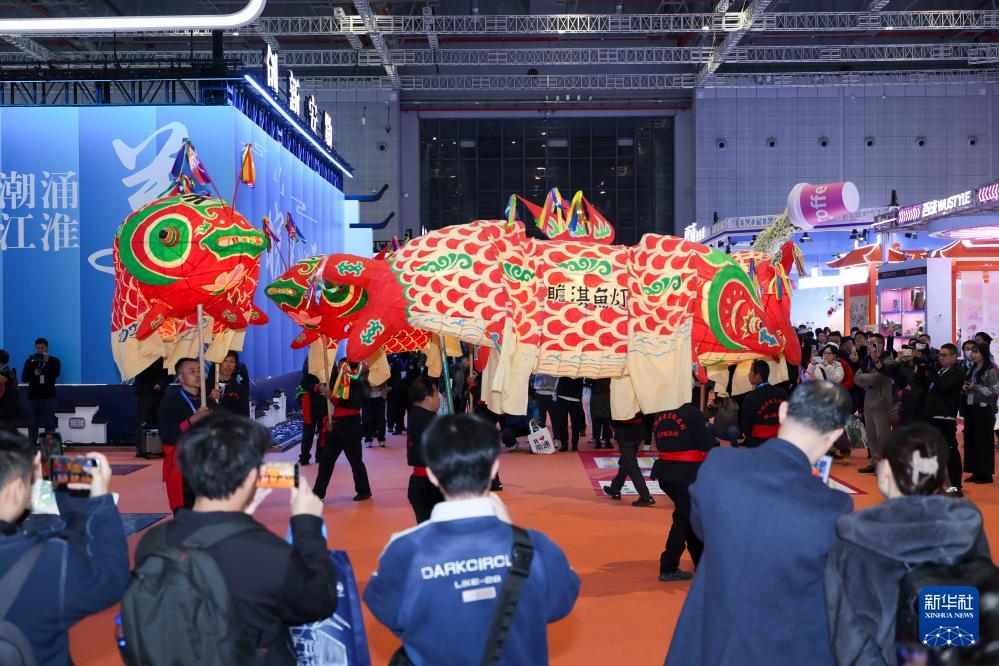 11月20日在安徽展區(qū)拍攝的瞻淇魚燈表演。