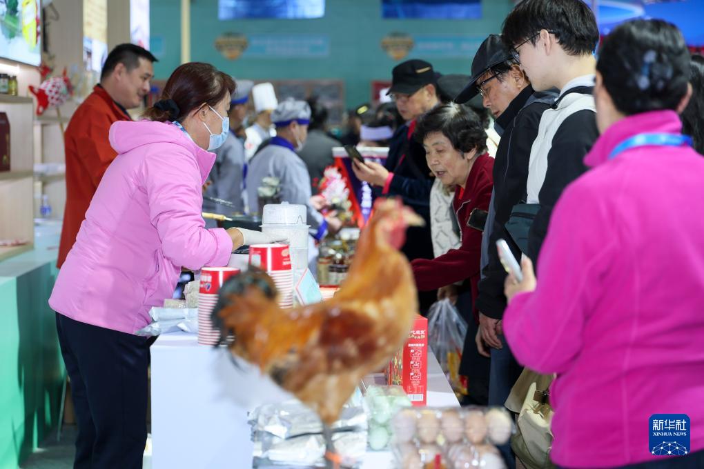 11月20日,觀眾在安徽展區(qū)體驗美食。