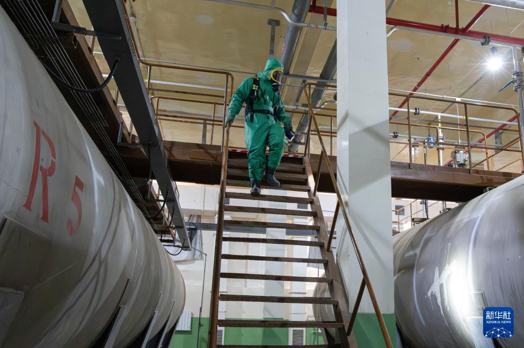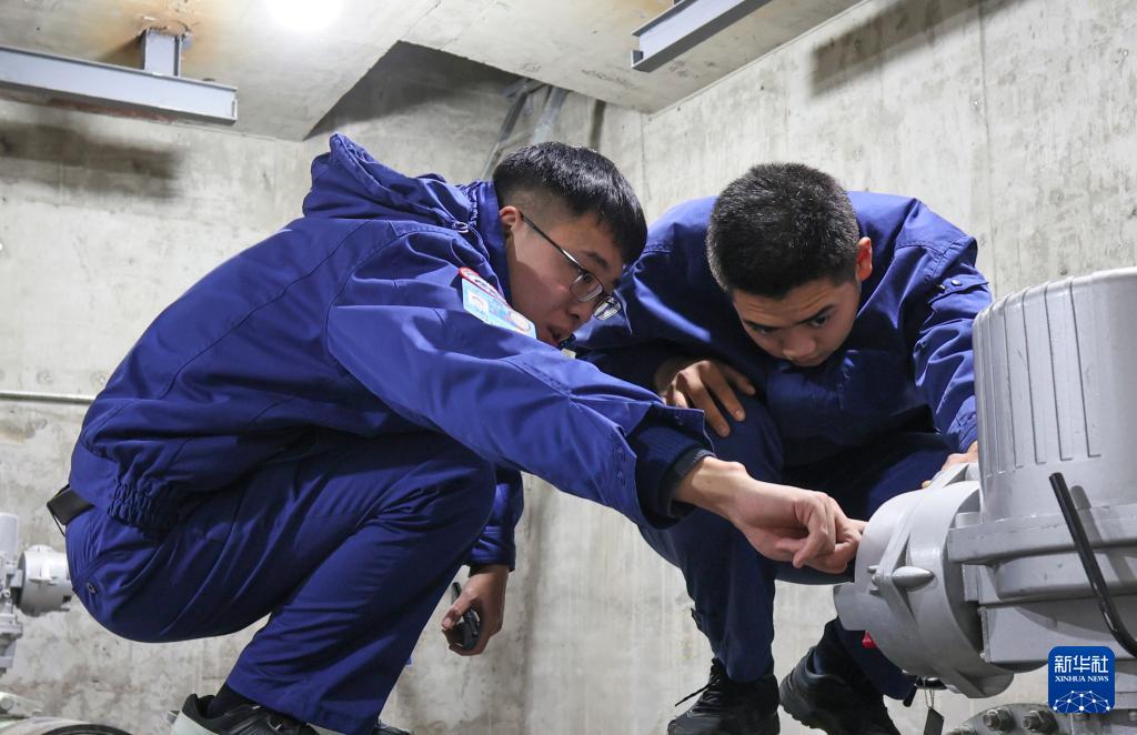 11月13日,發(fā)射場消防人員在消防泵站檢查設(shè)備狀態(tài)。