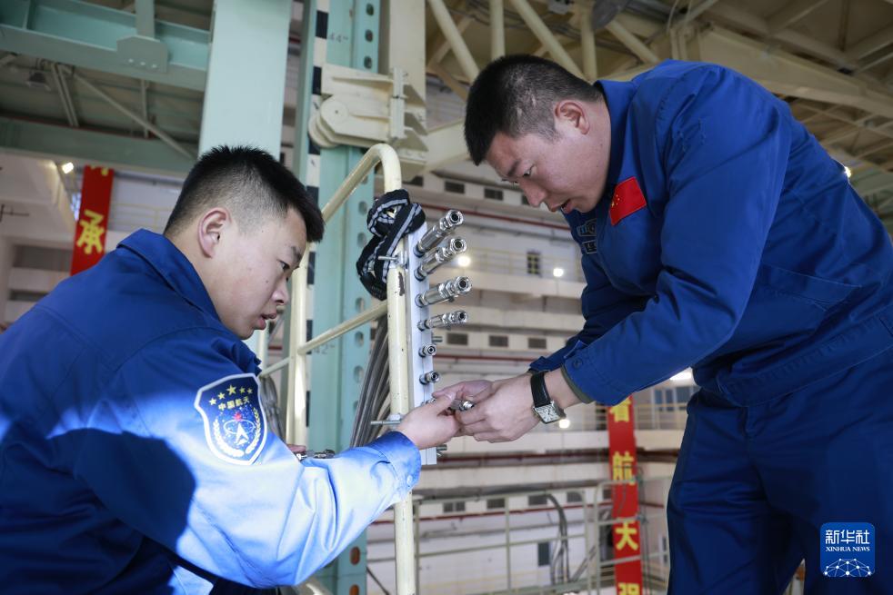 11月9日,工作人員在對神舟二十二號的供氣管路進(jìn)行吹除作業(yè)。