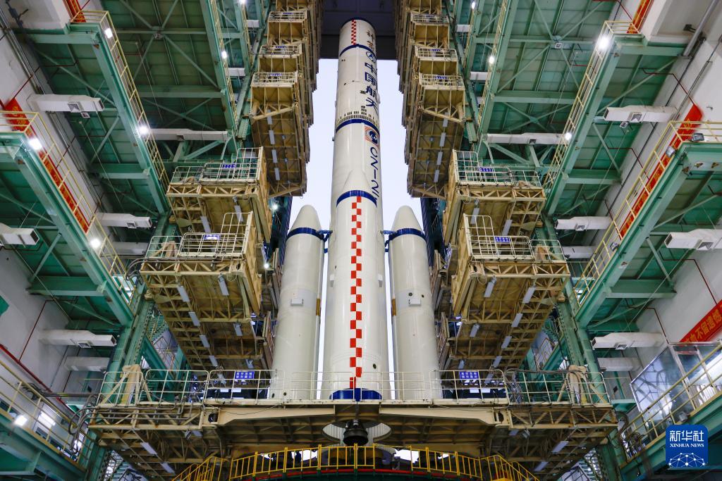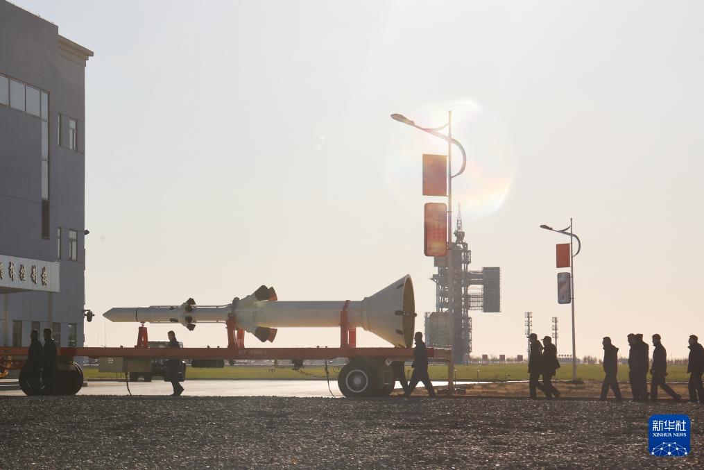 11月20日,神舟二十二號飛船與長征二號F遙二十二運(yùn)載火箭組合體準(zhǔn)備轉(zhuǎn)運(yùn)。