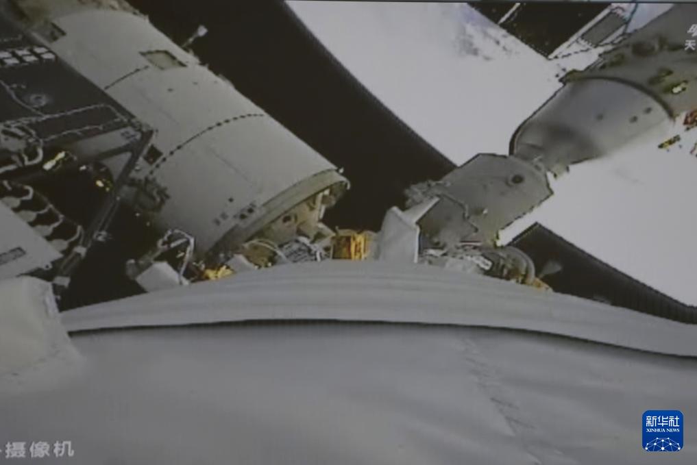 這是11月25日在北京航天飛行控制中心拍攝的神舟二十二號飛船與空間站組合體對接成功的實時畫面。