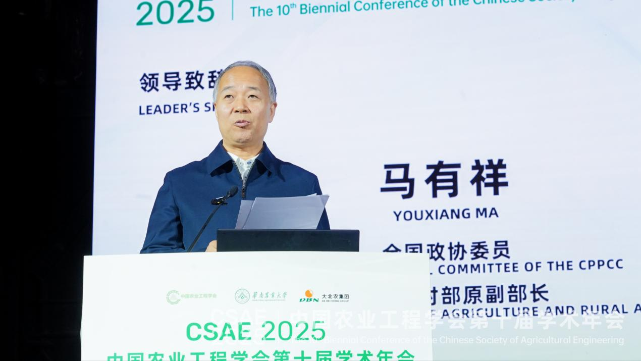 第十四屆全國政協(xié)委員、農(nóng)業(yè)農(nóng)村部原副部長馬有祥發(fā)表了主旨講話,他指出,黨的二十屆四中全會就“加快農(nóng)業(yè)農(nóng)村現(xiàn)代化、扎實推進(jìn)鄉(xiāng)村全面振興”作出重要戰(zhàn)略部署,農(nóng)業(yè)工程是工程技術(shù)與農(nóng)業(yè)發(fā)展深度融合的重要載體。他表示,這次的學(xué)術(shù)年會體現(xiàn)了農(nóng)業(yè)工程多學(xué)科交叉融合的屬性,作為學(xué)術(shù)組織,已經(jīng)成為農(nóng)業(yè)工程界的重要引領(lǐng)力量。