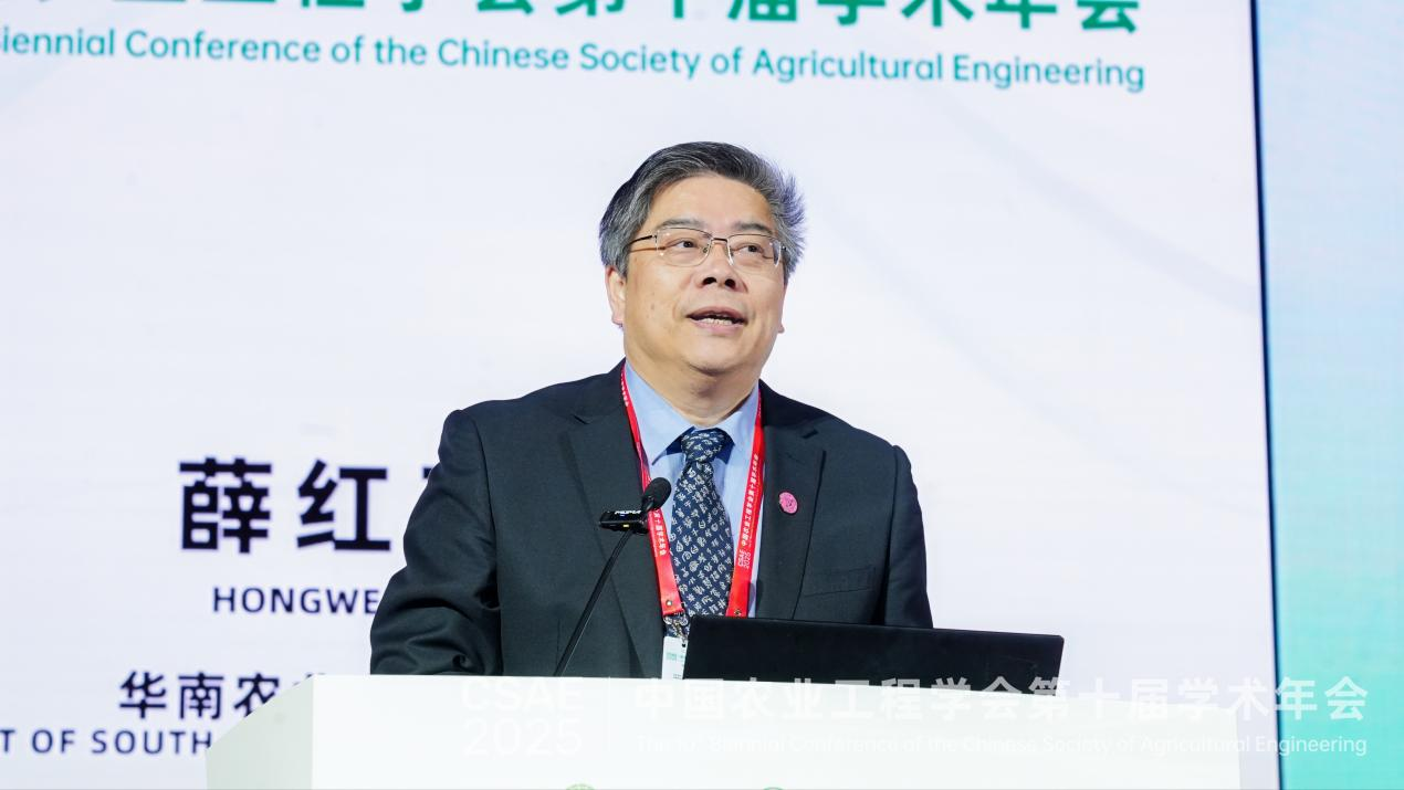 華南農(nóng)業(yè)大學(xué)校長薛紅衛(wèi)代表承辦單位致辭,他首先對與會的領(lǐng)導(dǎo)、嘉賓表示了誠摯歡迎,隨后簡要介紹了年會承辦情況,并就華南大學(xué)在農(nóng)業(yè)工程學(xué)科建設(shè)方面的主要成果做了簡要匯報。
