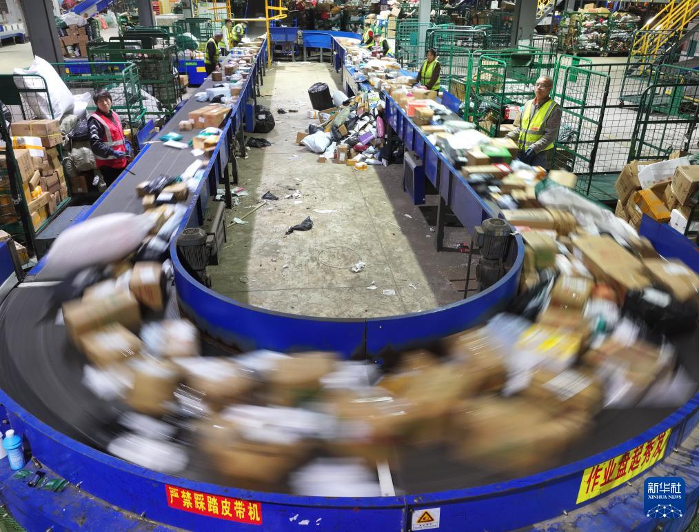 12月1日,在中國(guó)郵政速遞物流股份有限公司四川省達(dá)州市分公司郵件處理分局,工作人員在智能快遞流水線上分揀快遞郵件。