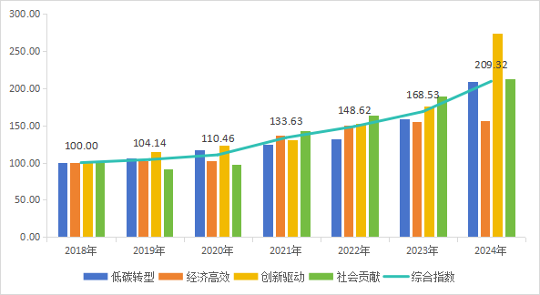 指數(shù)結(jié)果顯示,2024年,內(nèi)蒙古現(xiàn)代能源經(jīng)濟(jì)發(fā)展指數(shù)增長至209.32點(diǎn),同比增速達(dá)24.21%,發(fā)展質(zhì)速較前期進(jìn)一步提升,年均復(fù)合增速達(dá)13.10%,其中,低碳轉(zhuǎn)型、創(chuàng)新驅(qū)動和社會貢獻(xiàn)三項(xiàng)指標(biāo)較基期均已實(shí)現(xiàn)翻倍增長,現(xiàn)代能源經(jīng)濟(jì)的高速發(fā)展為內(nèi)蒙古區(qū)域經(jīng)濟(jì)發(fā)展格局注入了巨大動能。從“挖煤賣煤”到“追風(fēng)逐日”,從“能源基地”到“綠能高地”,內(nèi)蒙古走出了一條獨(dú)具特色的能源革命之路。