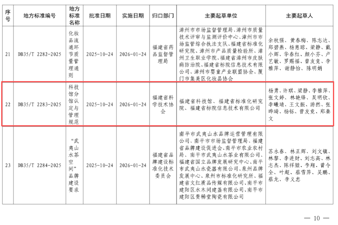 近日,由福建省科技館牽頭研制的福建省地方標準《科技館分館認定與管理規(guī)范》(DB35/T 2283-2025)經福建省市場監(jiān)督管理局批準正式發(fā)布,將于2026年1月24日起實施。該標準歸口于福建省科協(xié),是全國首個針對科技館分館建設與管理的省級地方標準,標志著福建省科技館總分館制建設邁入標準化、規(guī)范化的新階段。