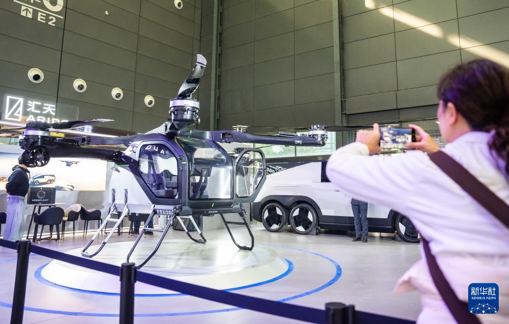 12月10日,觀眾在拍攝參展的飛行汽車飛行體。