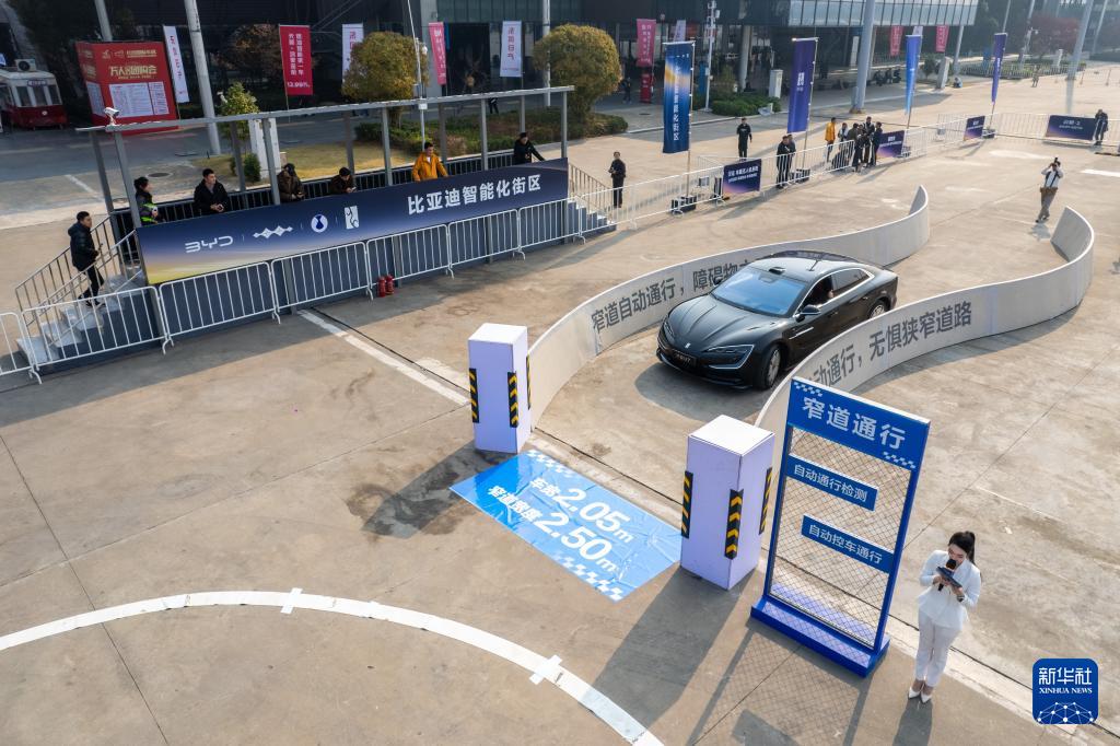 12月10日,參展車輛在展示智能輔助駕駛技術(shù)。
