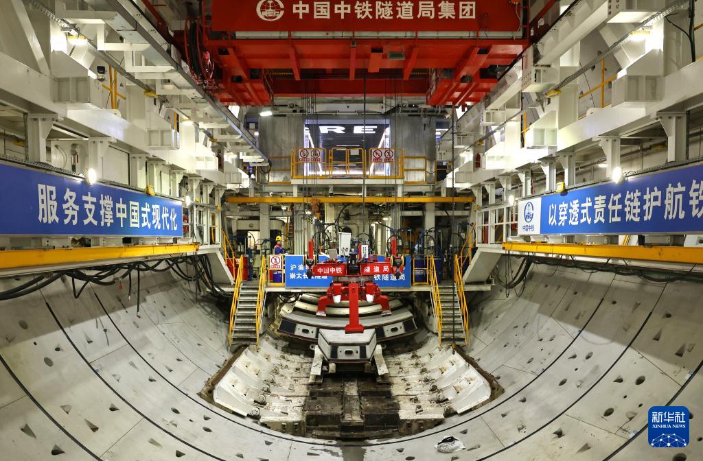 12月16日,我國自主研制的世界最大直徑高鐵盾構機——崇太長江隧道“領航號”掘進突破10000米大關,越江隧道工程取得階段性進展,為全線貫通奠定堅實基礎。崇太長江隧道是滬渝蓉高鐵東段線路上海至南京至合肥段控制性工程,連接上海市崇明區(qū)和江蘇省太倉市,全長14.25公里,設計時速350公里,采取單洞雙線設計。