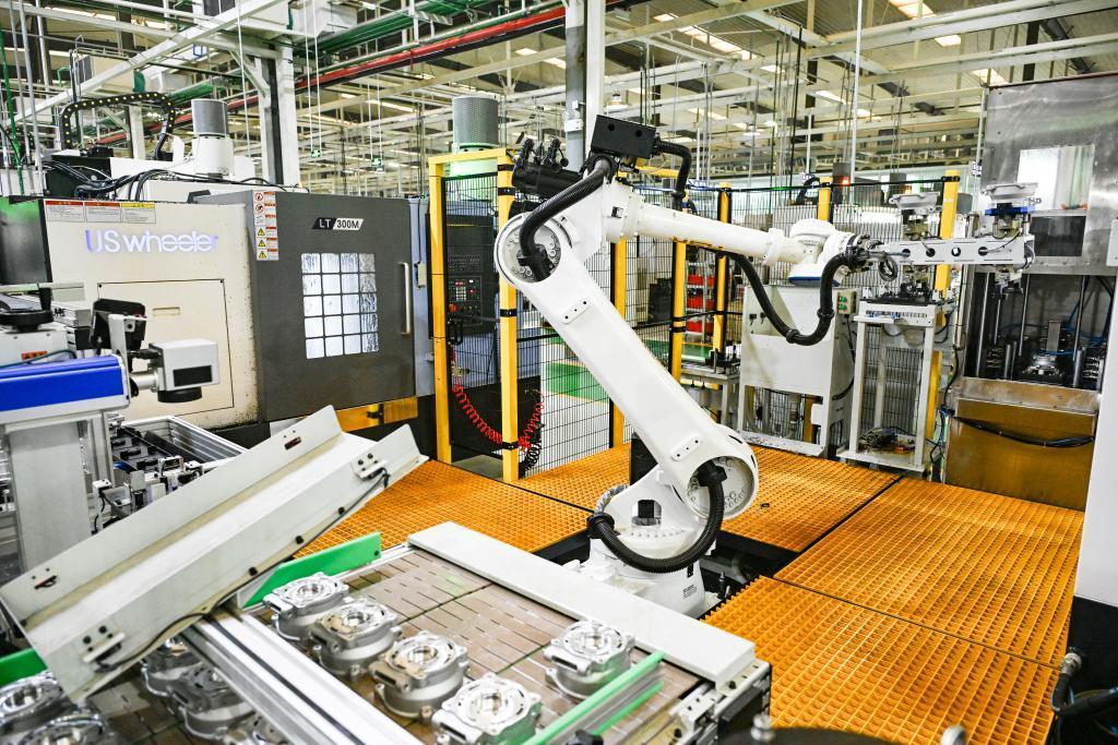 這是5月9日在位于北碚區(qū)的重慶順多利機(jī)車有限責(zé)任公司精工基地拍攝的自動(dòng)化生產(chǎn)作業(yè)現(xiàn)場(chǎng)。新華社記者 王全超 攝
