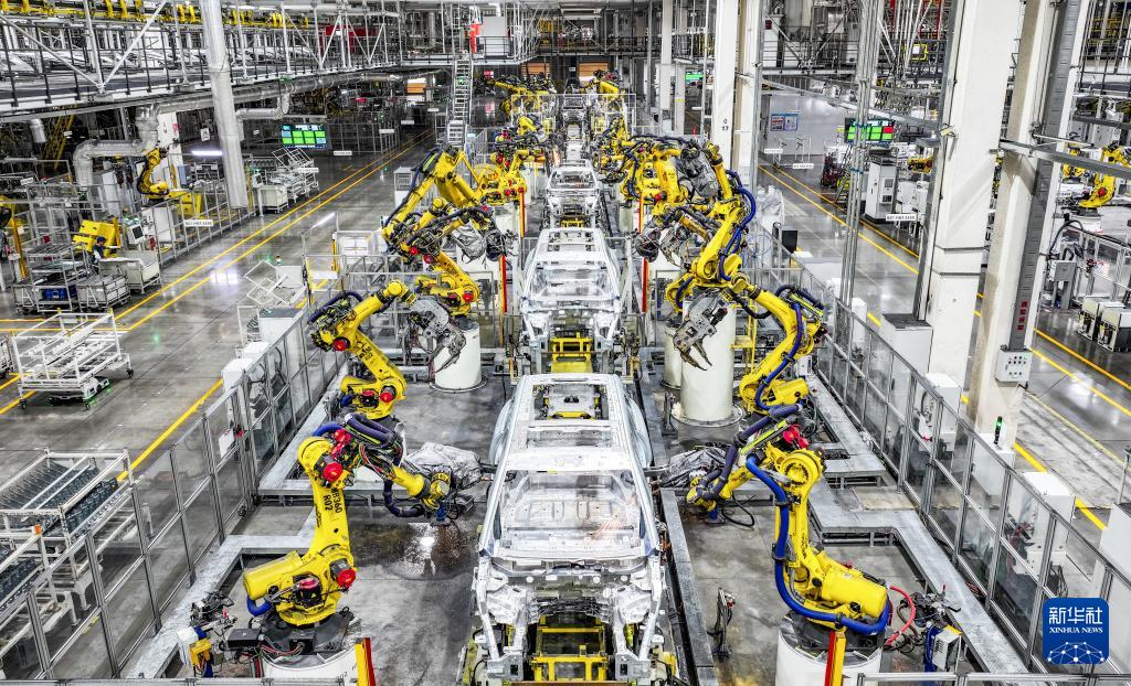 9月19日在位于重慶市兩江新區(qū)的賽力斯汽車超級工廠拍攝的自動化生產(chǎn)作業(yè)現(xiàn)場。