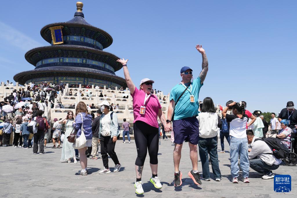 5月1日,來自澳大利亞的游客在北京天壇公園祈年殿前留影。隨著我國持續(xù)優(yōu)化免簽政策,越來越多的外國游客來華旅游,“China Travel”熱度持續(xù)提升。