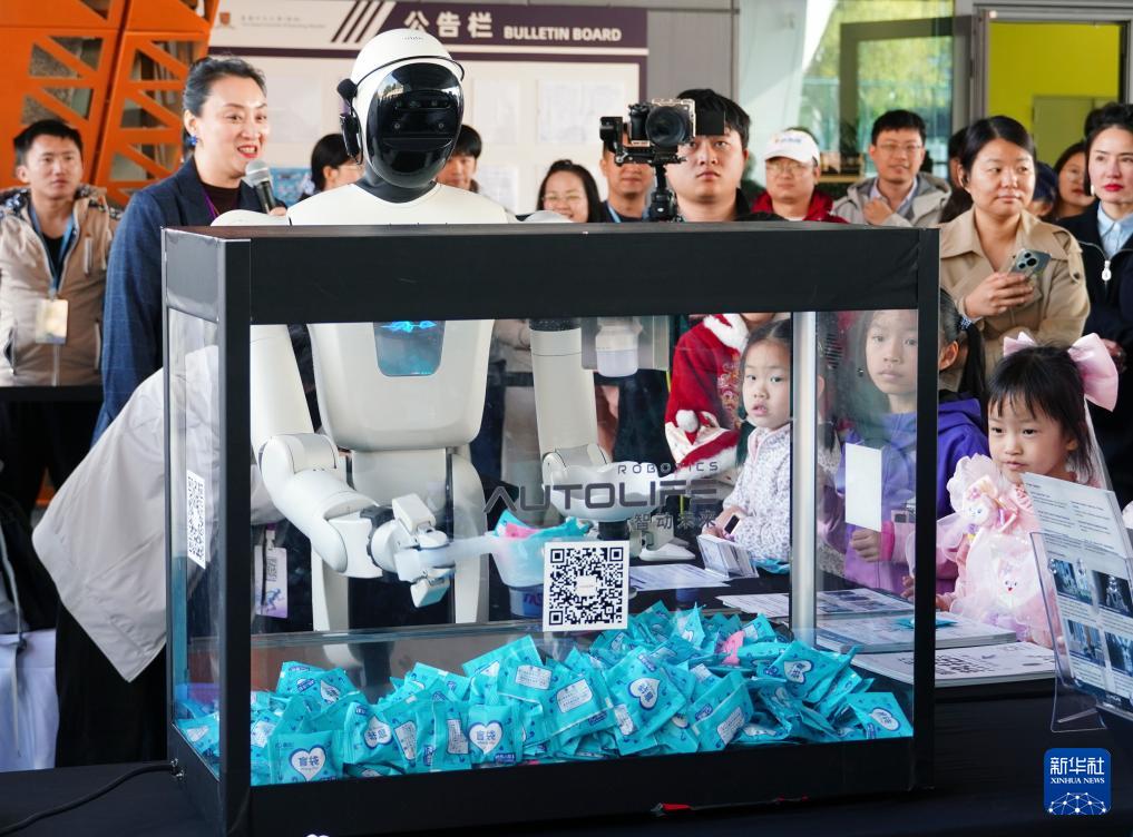 12月27日,機器人為現(xiàn)場觀眾發(fā)放禮品。