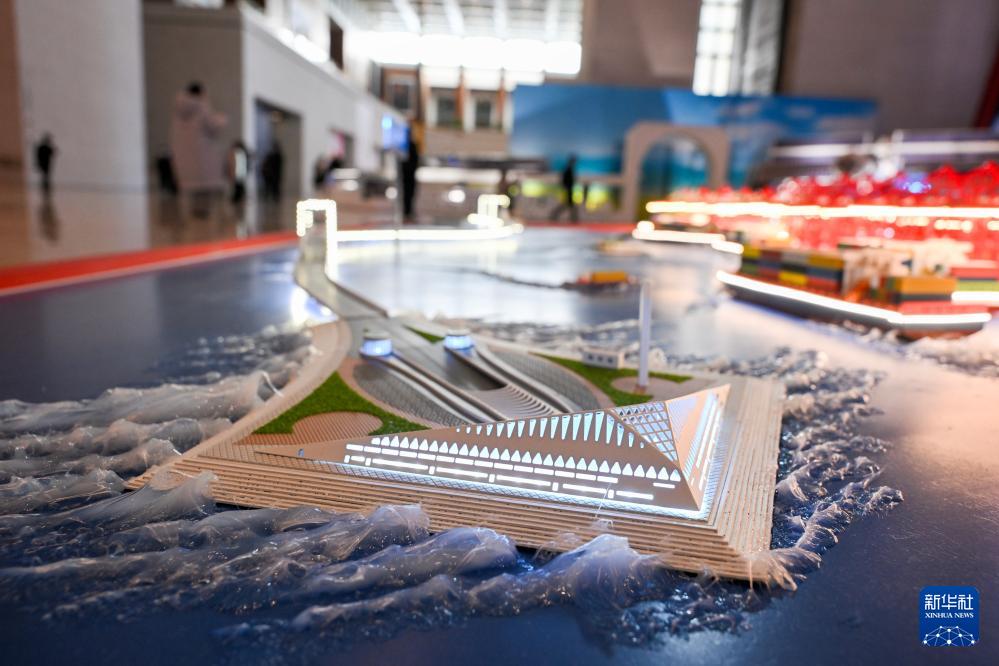 這是在“筑基強國路——中國制造‘十四五’成就展”上展出的上海洋山港模型(12月29日攝)。