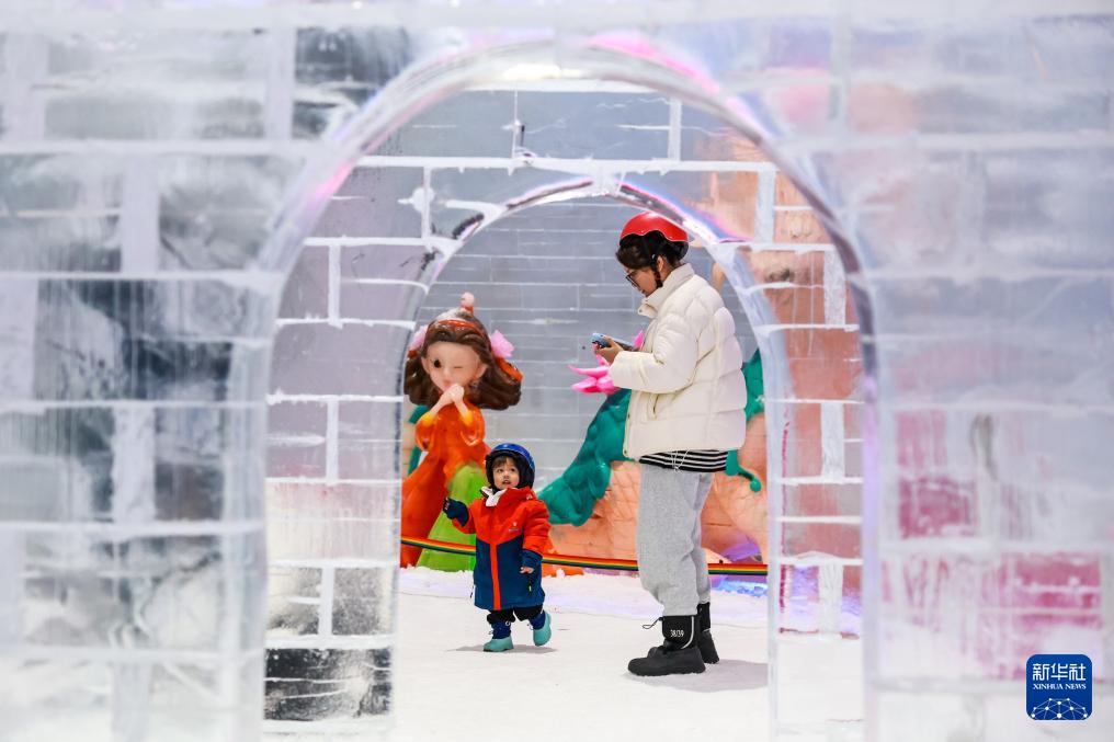 12月29日,游客在湖州太湖龍之夢樂園冰雪世界內(nèi)游玩。