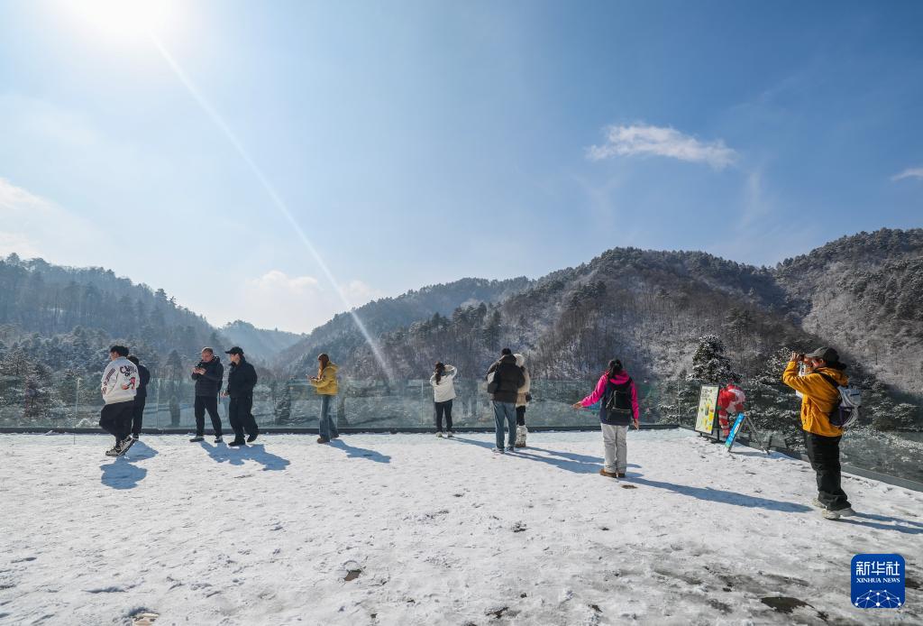 12月25日,游客們在杭州臨安大明山萬松嶺滑雪場欣賞雪景。