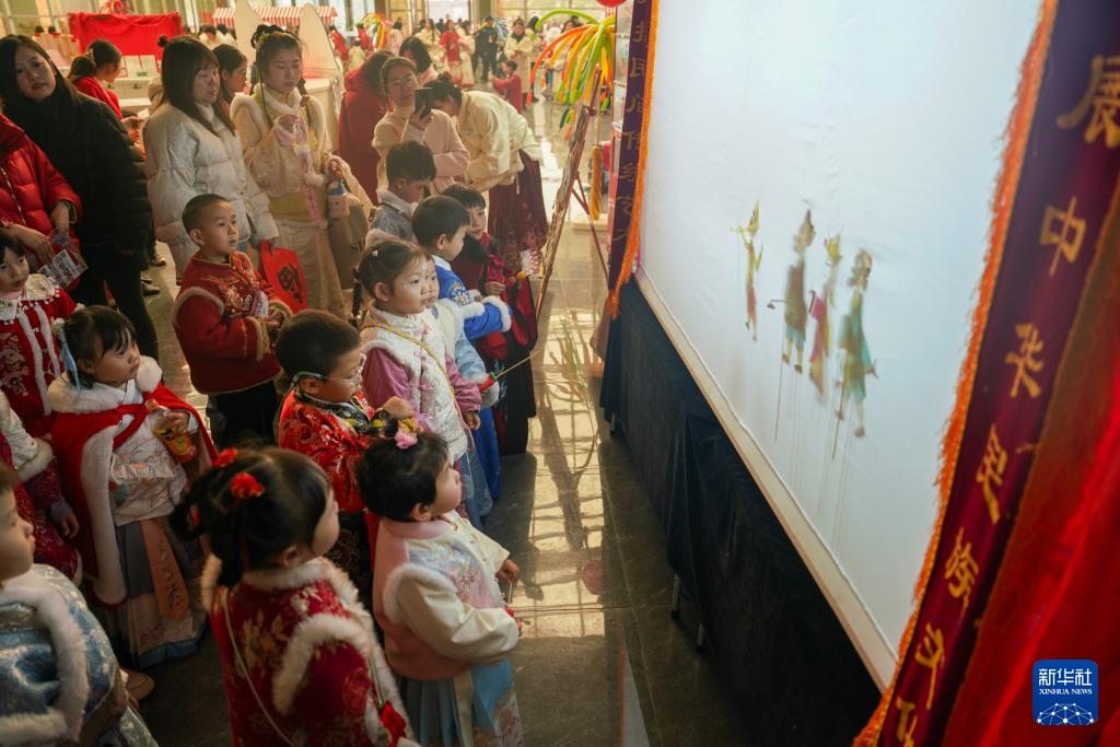 12月30日,四川省眉山市彭山區(qū)學(xué)院路幼兒園小朋友在區(qū)文化館新春非遺市集活動(dòng)上觀看非遺皮影戲。