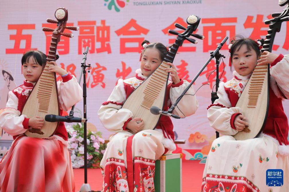 12月30日,浙江省杭州市桐廬縣實(shí)驗(yàn)小學(xué)的學(xué)生用琵琶齊奏《四季歌》。
