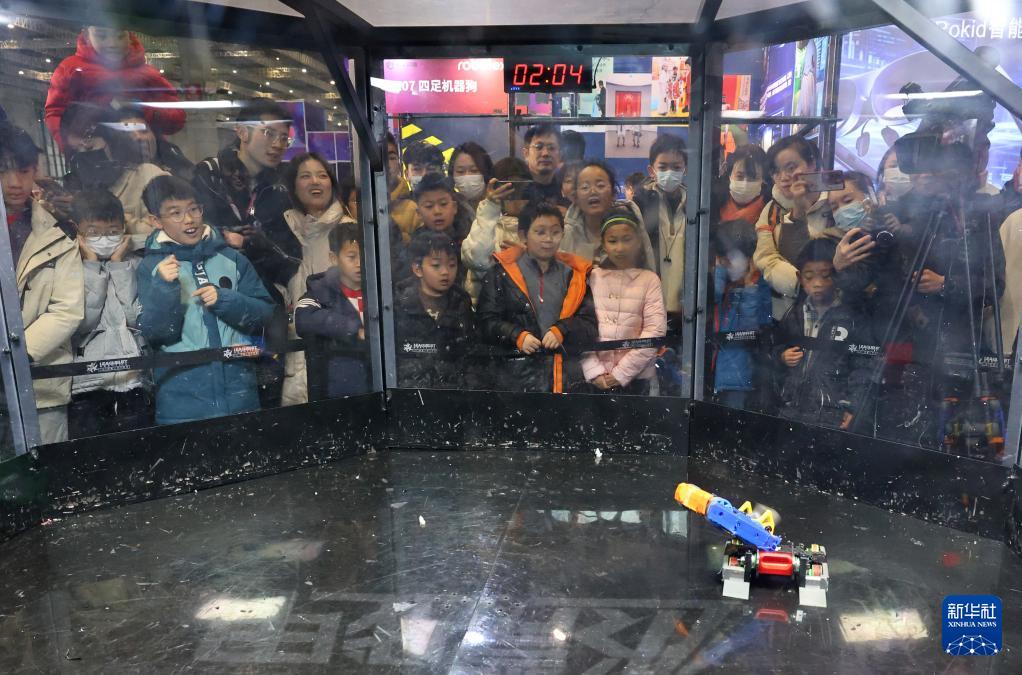 1月2日,參觀者觀看機器人格斗比賽。