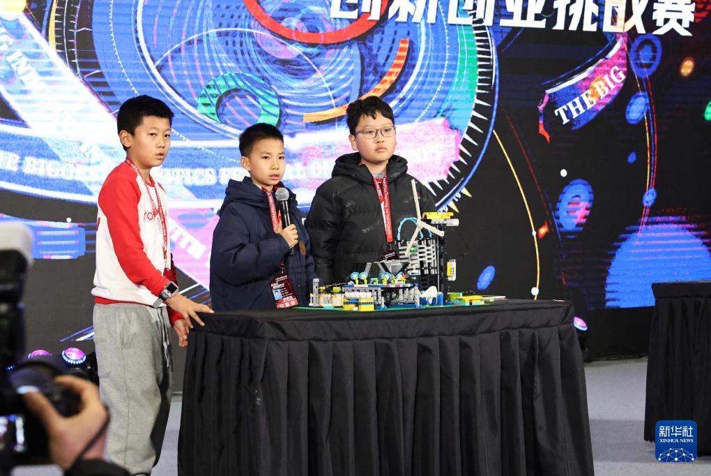 1月2日,小選手們在創(chuàng)新創(chuàng)業(yè)挑戰(zhàn)賽舞臺上介紹他們的創(chuàng)意編程作品。
