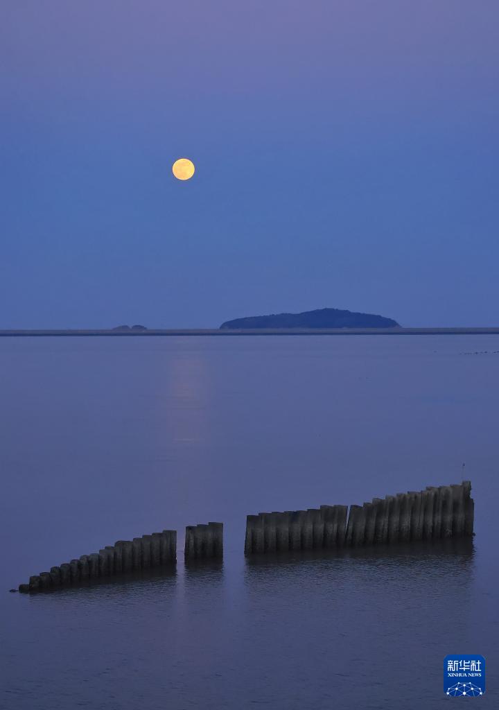 1月3日在浙江省舟山市梁橫島拍攝的月亮。