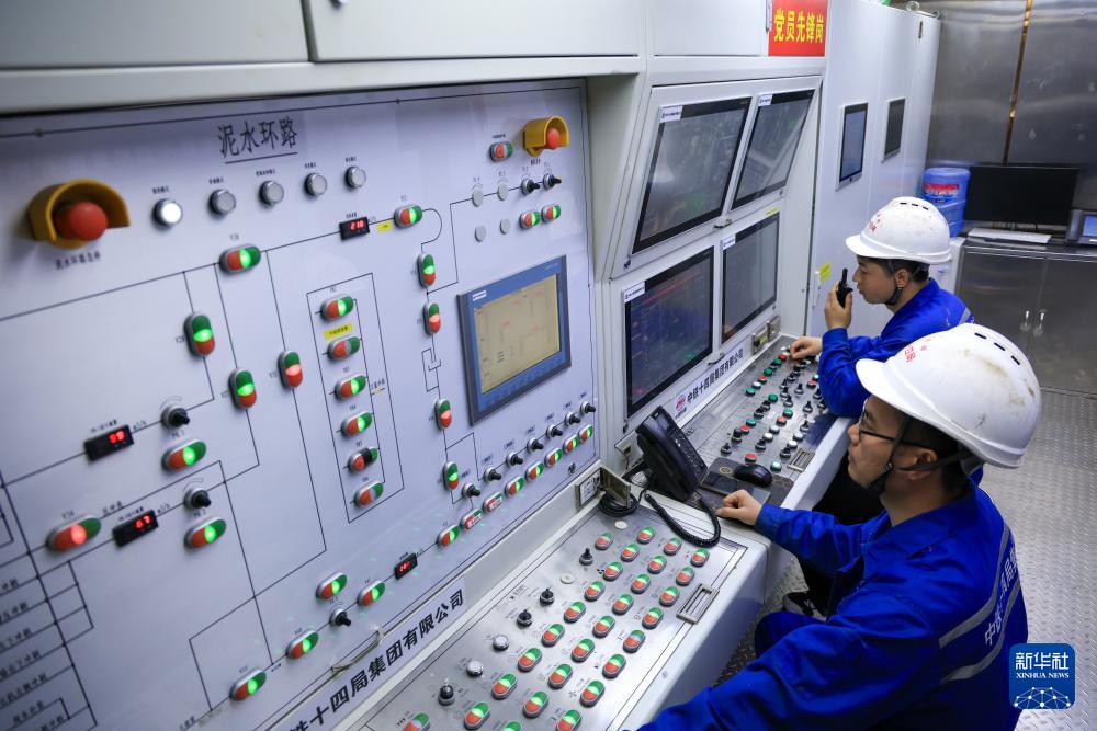 1月6日,中鐵十四局施工人員在“深江1號(hào)”盾構(gòu)機(jī)操作室控制設(shè)備運(yùn)行。