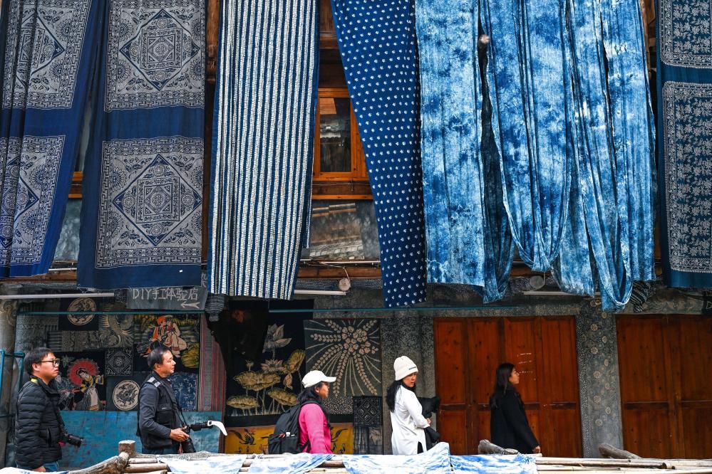 “我們帶動繡娘們學習靛染、蠟染、豆染、植物彩染等多種染色技藝,并融入現(xiàn)代審美設計理念?!标懹旅谜f,如今合作社已開發(fā)出600多款新穎別致的產(chǎn)品,滿足了市場的多元化需求。而她通過走訪老藝人、恢復完善豆染技藝、創(chuàng)新嘗試多種植物染色原料,成功申報10余項專利,讓產(chǎn)品從“靛藍”走向“五彩”。