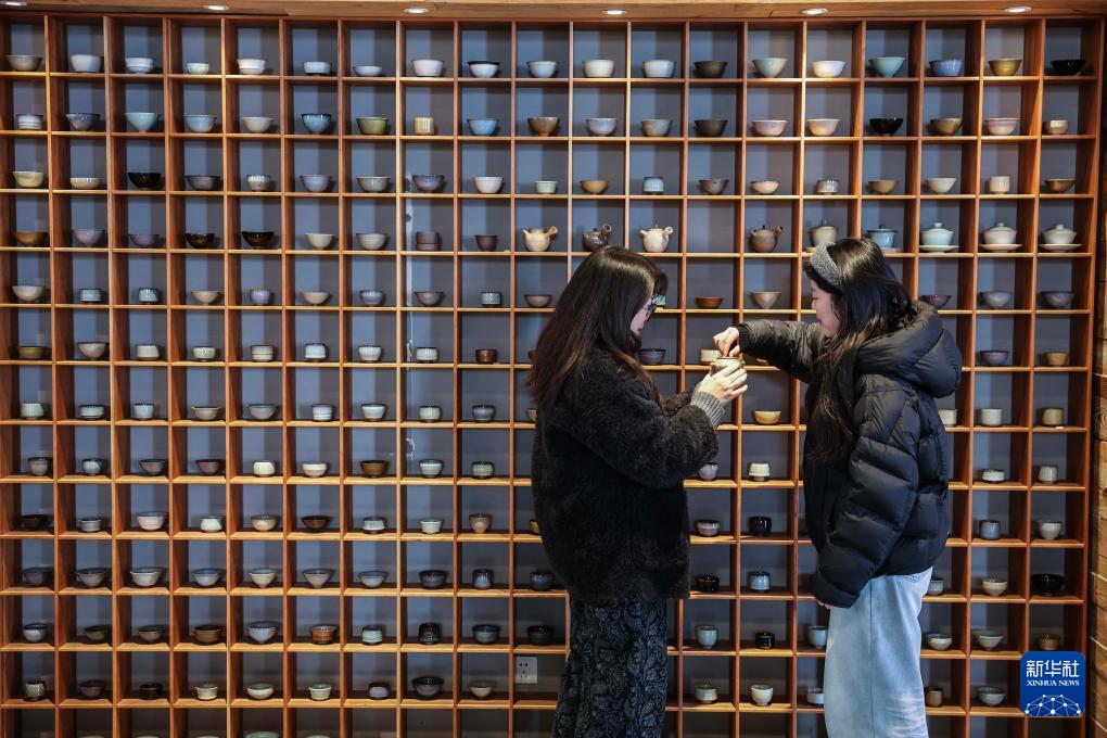 1月8日,游客在金華市金東區(qū)古婺窯火陶瓷文化藝術(shù)館里欣賞婺州窯作品。