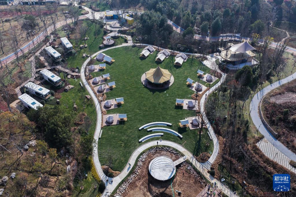 空中俯瞰金華市金東區(qū)金漪湖云蝶中心的露營基地(1月8日攝,無人機(jī)照片)。