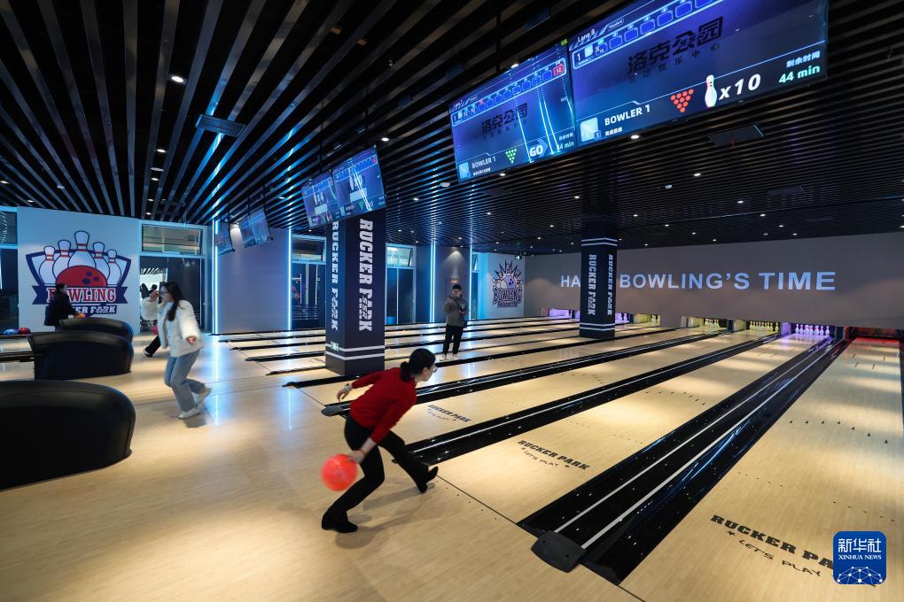 1月8日,市民在金華市金東區(qū)金漪湖云蝶中心洛克公園里打保齡球。洛克公園是集運(yùn)動(dòng)健身、休閑娛樂、體育培訓(xùn)、賽事活動(dòng)、智能體驗(yàn)于一體的體育公園。