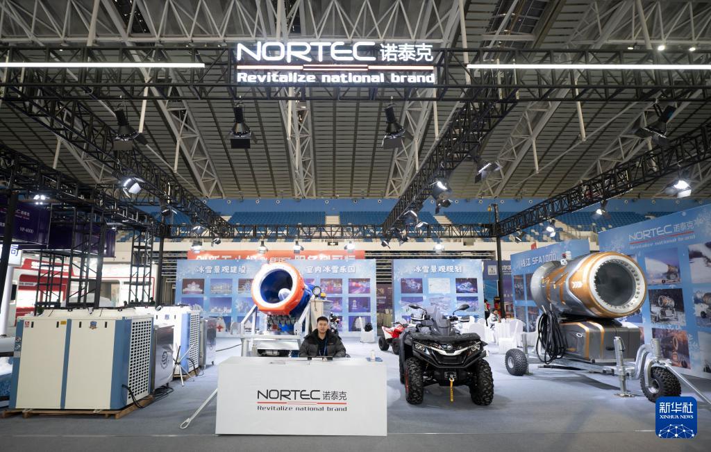 1月6日在2026哈爾濱國(guó)際冰雪經(jīng)濟(jì)博覽會(huì)拍攝的冰雪裝備展區(qū)內(nèi)一處展臺(tái)。