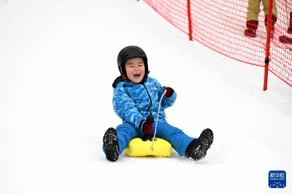 1月11日,小朋友在石家莊市“熱雪奇跡”滑雪場(chǎng)體驗(yàn)冰雪運(yùn)動(dòng)。