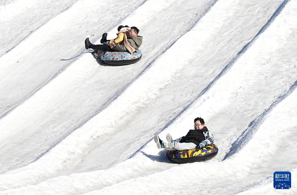 1月11日,游客在石家莊市正定縣冰雪嘉年華游玩。