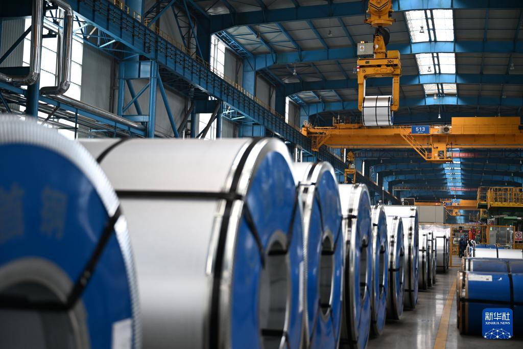 1月14日,首鋼智新電磁材料(遷安)股份有限公司吊裝機械在吊運電工鋼。