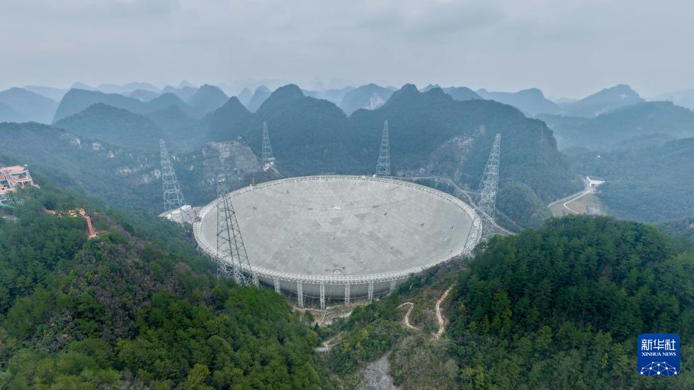 1月16日拍攝的“中國天眼”(無人機(jī)全景照片,維護(hù)保養(yǎng)期間拍攝)。