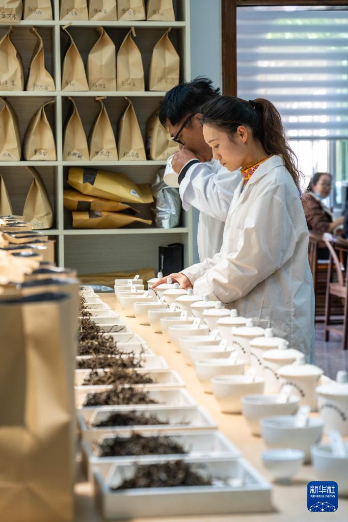 1月23日,評審專家團(tuán)隊(duì)在臨滄市雙江縣茶葉檢測品薦溯源中心評審茶葉。