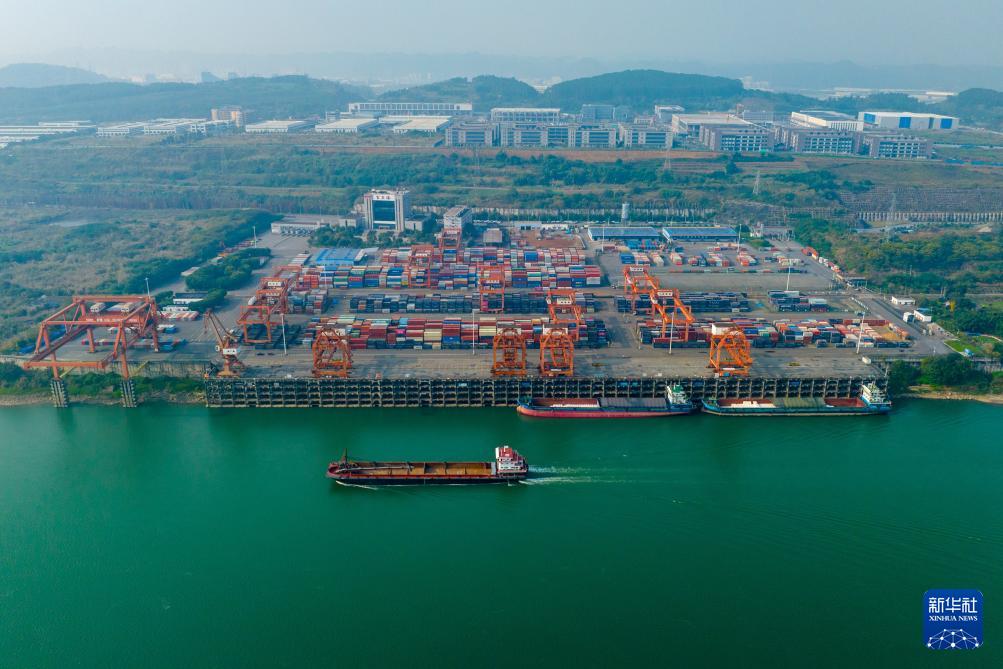 這是2025年12月10日拍攝的四川宜賓港5G智慧集裝箱碼頭(無人機照片)。