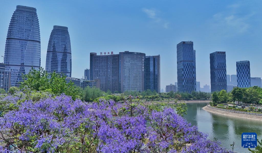 2025年5月12日拍攝的四川省成都市錦江區(qū)錦江畔風光(無人機照片)。