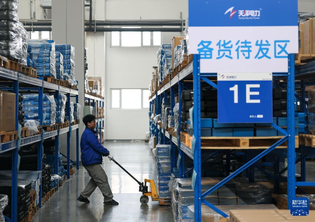 1月30日,在位于京津中關(guān)村科技城的天澤電力(天津)有限公司,工作人員將生產(chǎn)成品入庫存放。