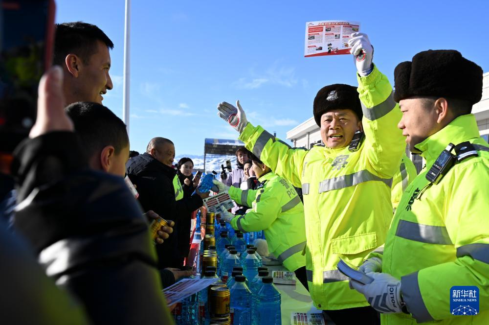 2月2日,在烏尉高速公路永豐服務區(qū),烏魯木齊市公安局交管支隊烏拉泊大隊民警向過往司乘人員進行安全出行宣傳。