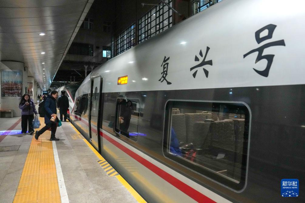 2月2日,在北京西站,G6701次列車旅客準備乘車。