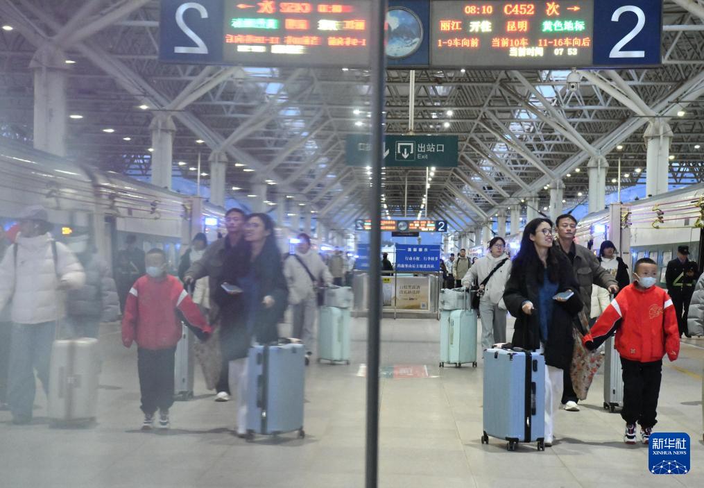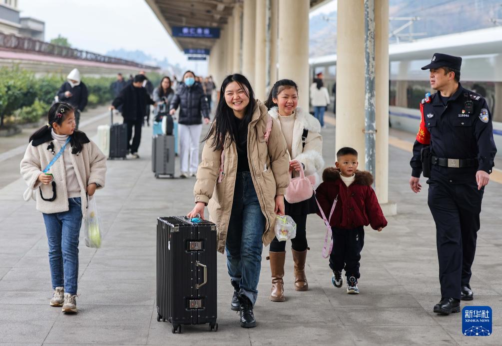 2月2日,旅客在滬昆高鐵貴州銅仁南站轉(zhuǎn)乘。