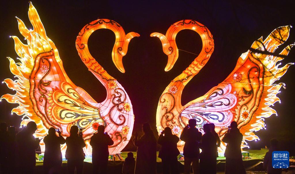 2月17日,游客在河南省洛陽(yáng)市隋唐城遺址植物園欣賞“神都上元燈會(huì)”主題特色燈展。